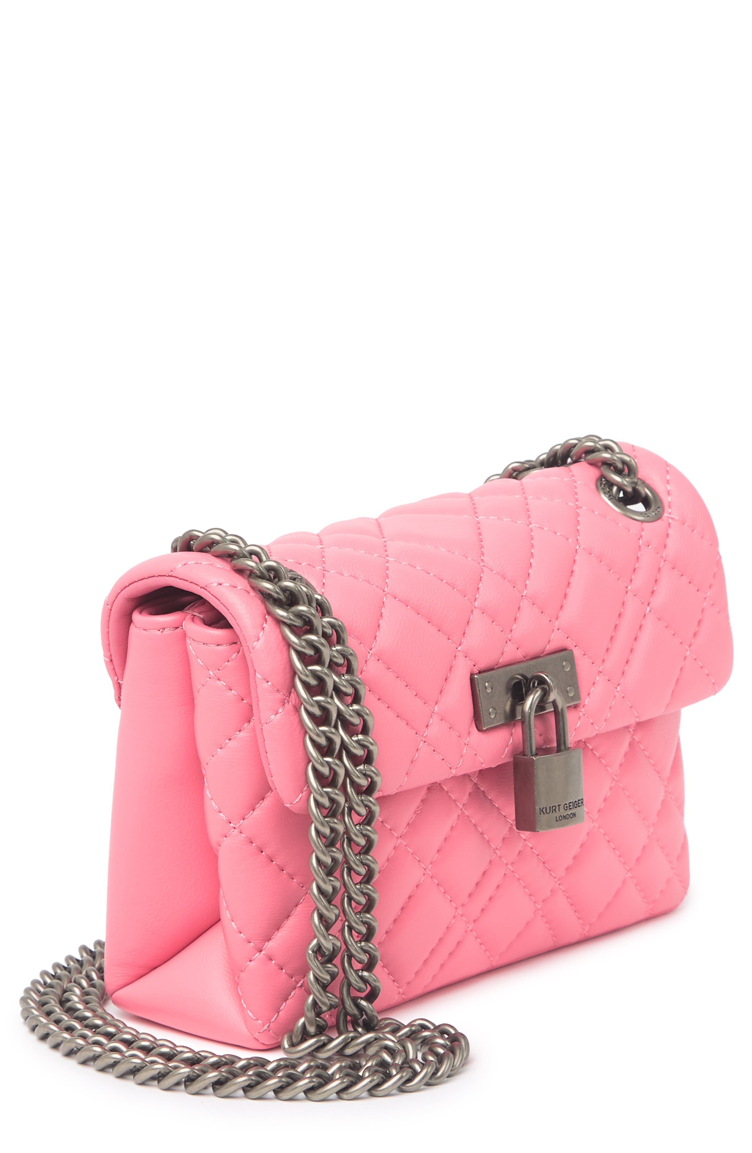Diamond quilting adds a trendy touch to a classic flap bag finished with an antiqued padlock detail. Worn once no scratches. Kurt Geiger London Colour. Quilted Leather Trendy Mini Bag Pink Pull Through Chain Strap Fold over Flap With Magnetic Closure Exterior Padded with Lock feature Textile Lining 5h 75 w 2 d New Never Used. Shop Womens Kurt Geiger Pink Size OS Crossbody Bags at a discounted price at Poshmark. A quilted leather bag with a lock hardware offers a chic refined style while carrying all of your things to go. Its brand new with tags.